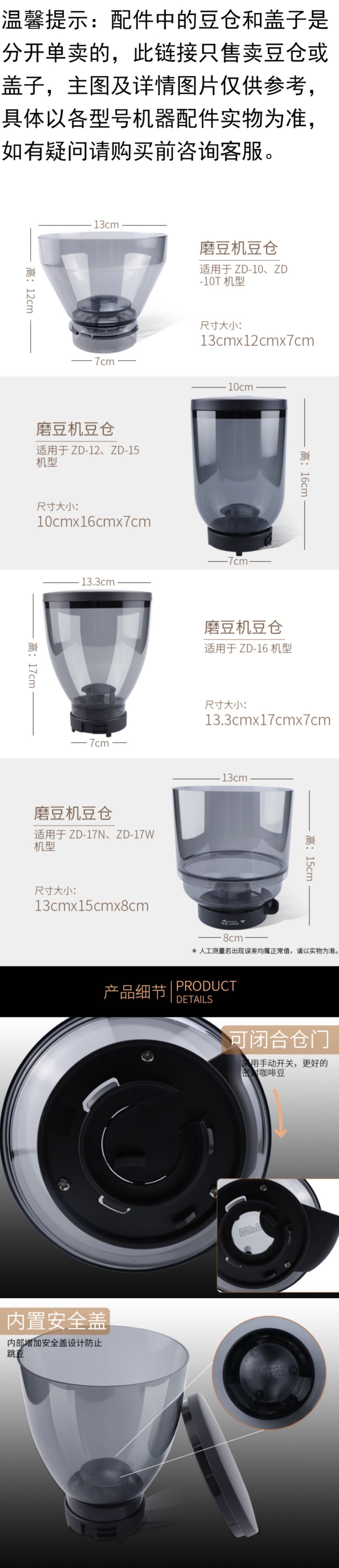 WPM/惠家各型号全自动半自动磨豆机配件豆仓盖子(单卖)